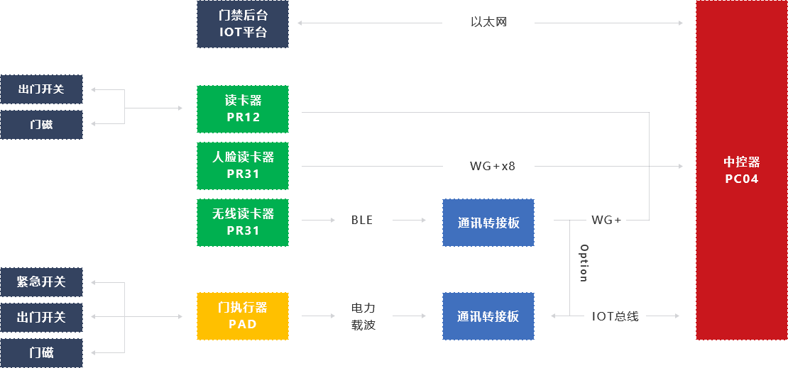 天地融国密门禁安全解决方案分为前端设备和后台服务两大部分。前端设备包括部署在各个点位的设备,包括门禁卡、读卡器、控制器等。后台功能包括用户管理、设备管理、运维管理、制证等各类服务。